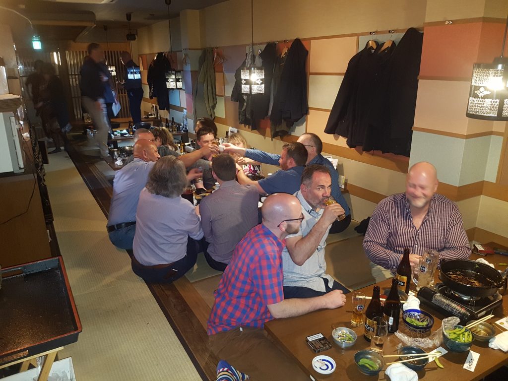 No matter, we all arrived safely, and largely on time. The evening meal was a traditionally seated Japanese meal, meat cooked at the table, and a seemingly unending supply of beer. This was the second all-you-can-drink meal and I think again we educated our hosts in just how much we can drink. The restaurant was set out with space under the table so we were seated in a more western style.