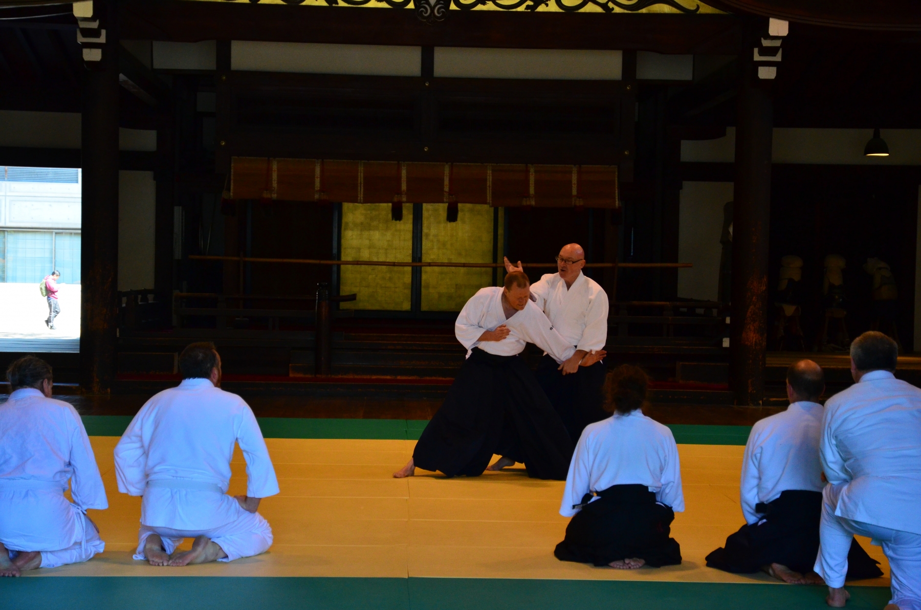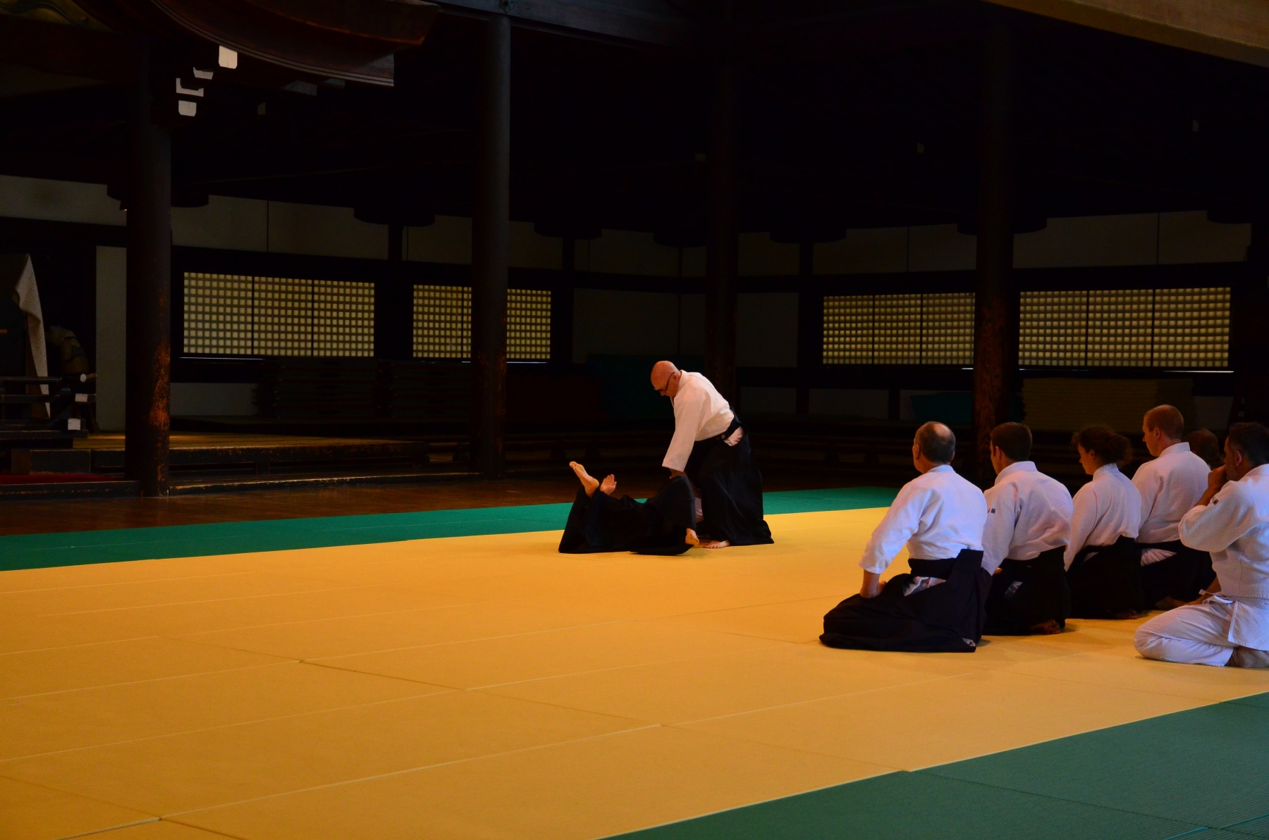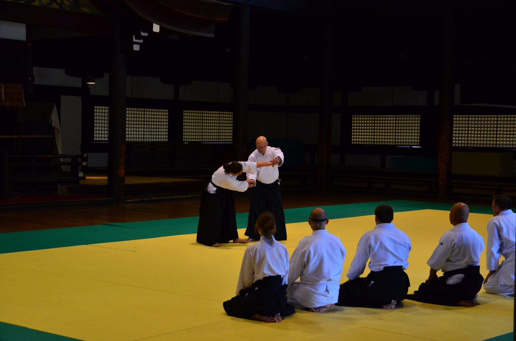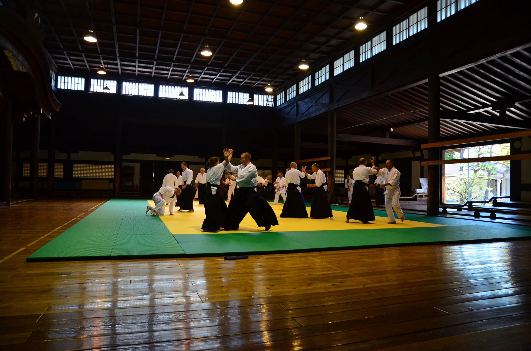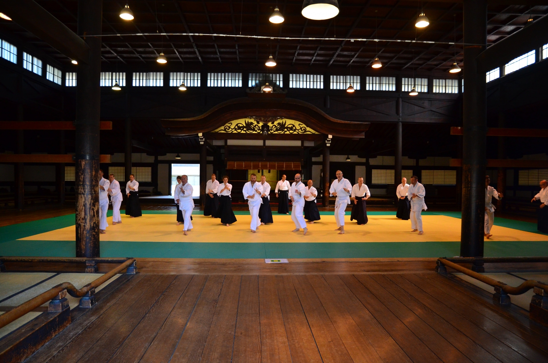 A dark and cool interior, dark polished wood floor, heavy wooden beams, they spoke of a place of solemnity, of serious practise and focus. No samurai ever stepped foot in this place, it was built after the samurai class had been abolished, but the feel of the room invoked a sense of connection to that aspect of Japan’s history. We were here to practise our Aikido, a martial art only a few generations removed from the samurai using their arts on the battle field.