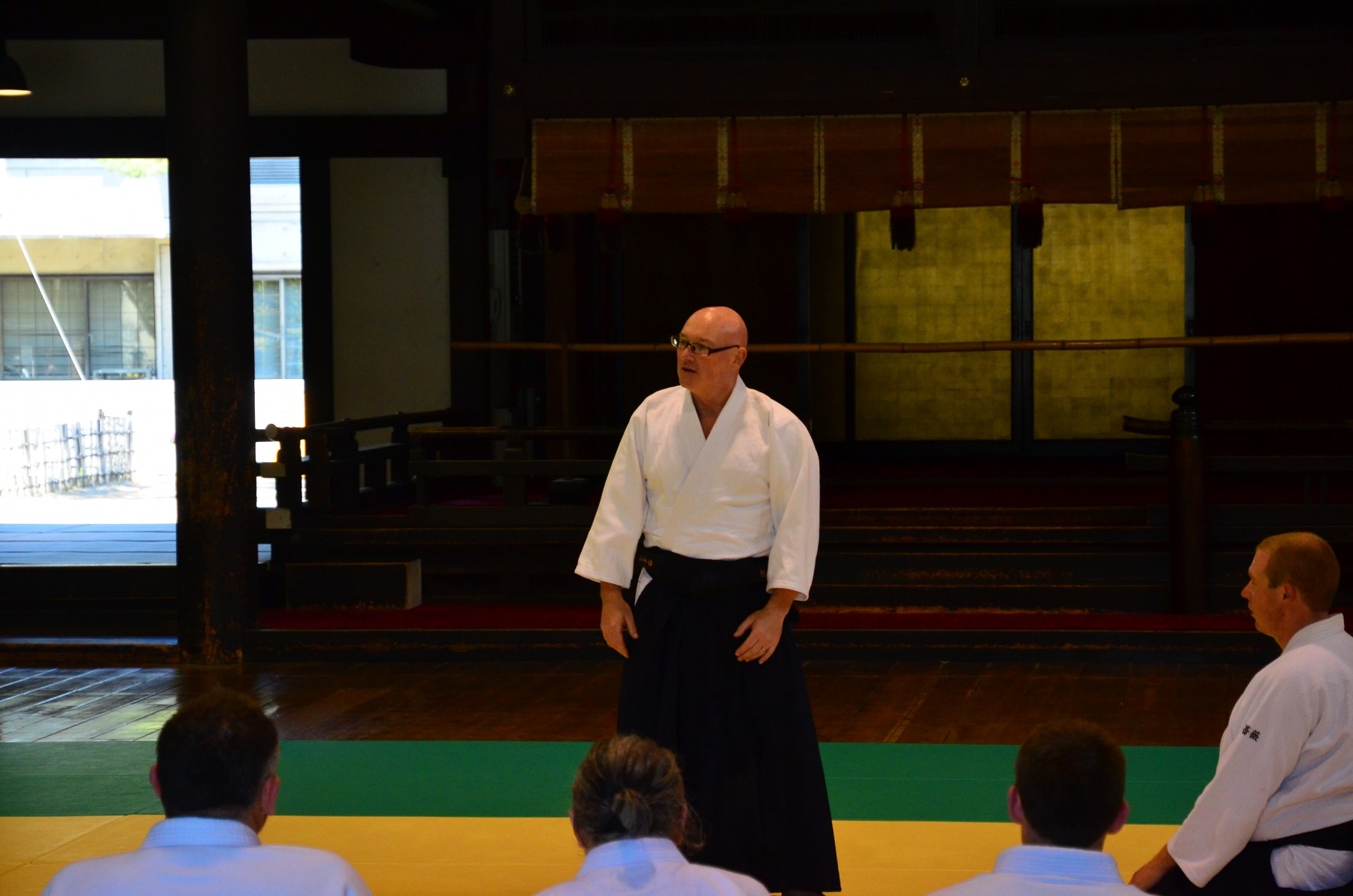Putting the mats down was a lot easier and quicker than it had been on Sunday, and we were soon kneeling on the mat, ready to begin. With the doors on both sides open, a gentle breeze blew through the Butokuden, and our kiai could be heard outside.