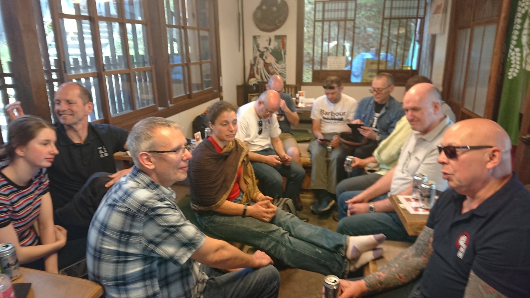 Training was, as always, vigorous, focused and good spirited. Exercises were taken by Sensei Tyler, classes were taught by Sensei Derrick, Sensei Pryce and Riley Shihan. There were a few instances of individuals having to leave the mat to apply a sticking plaster or two, and to clean up the blood they’d left on the mat. Injuries were nothing more than very minor nicks and grazes, but the White Rose definitely left its mark on Japan.