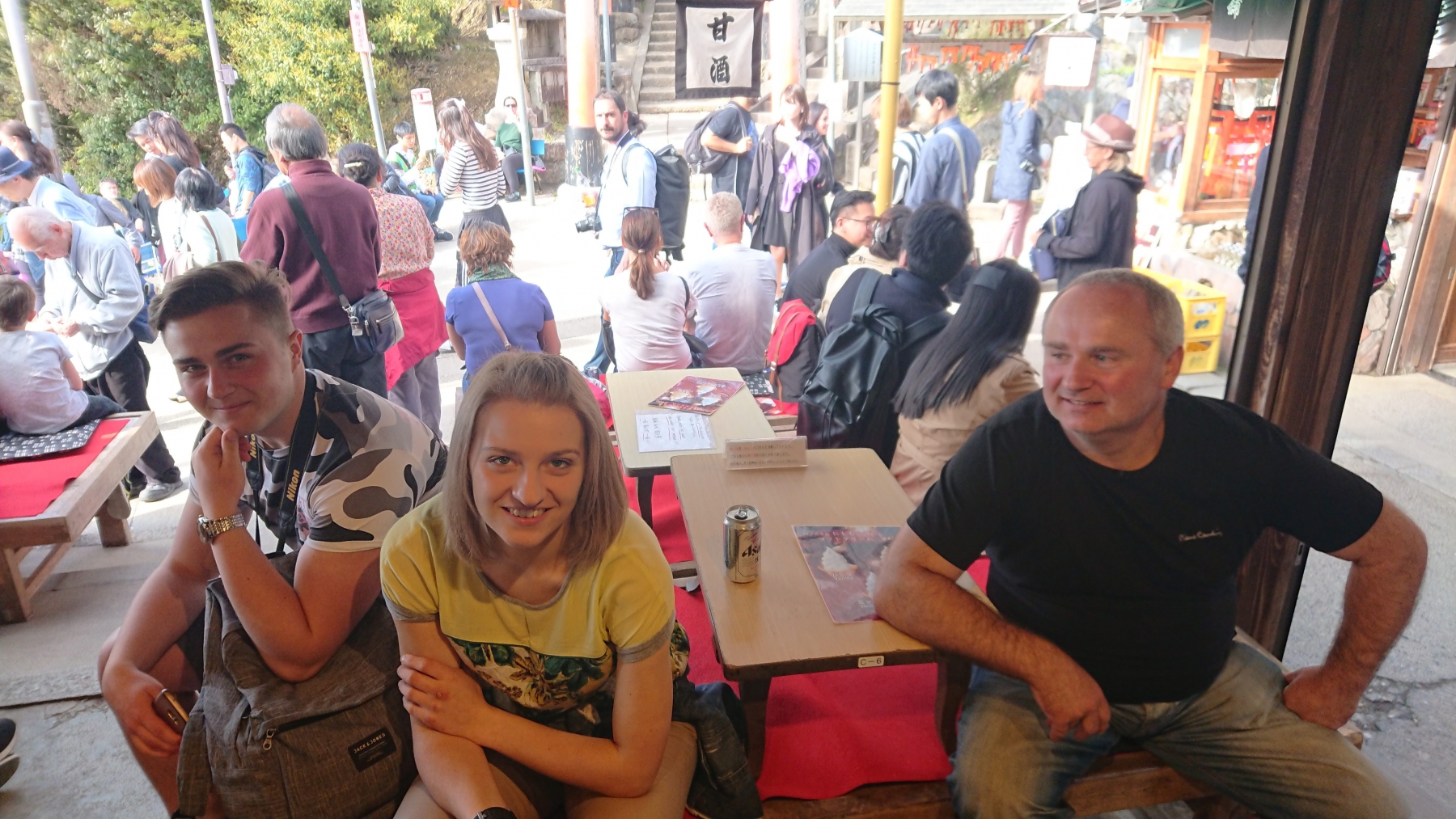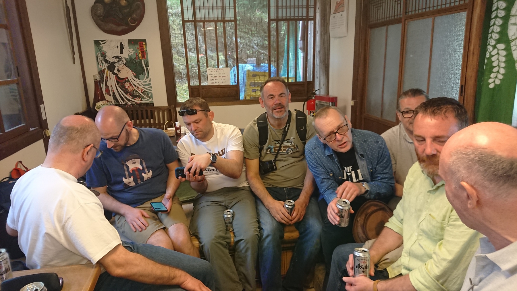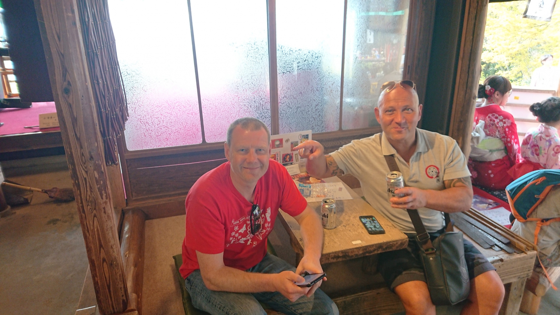 At the café half way down, Sensei Riley bought a round of beers and expressed his heartfelt gratitude and appreciation for the students who have supported the White Rose and those who have accompanied him to Japan. We raised our glasses (cans, actually) in a toast to the White Rose and a personal toast from Sensei.