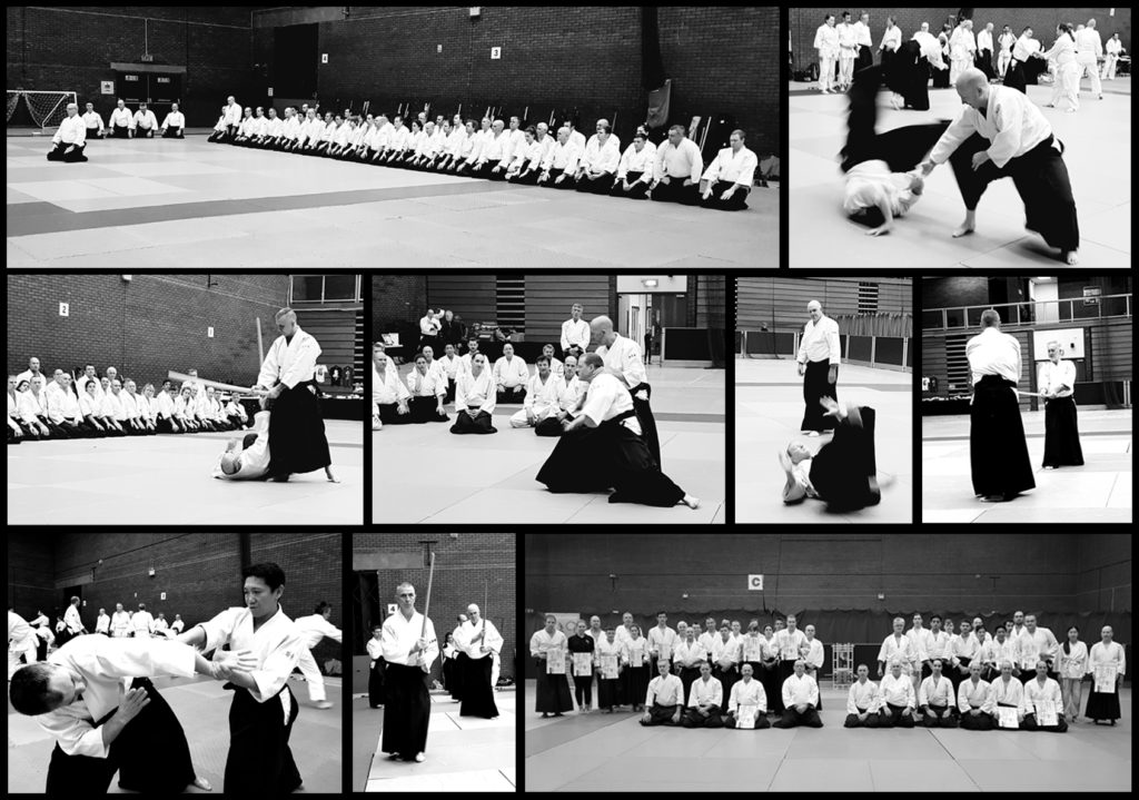Sensei Riley also attended a teaching engagement during May at Grimsby, conducting a course for Sensei John Holroyd, after which he was presented with a portrait of himself demonstrating the well-known pose. I think Sensei’s going to need a bigger wall!In support of Sensei Elphick’s new dojo in Durham Sensei Derrick also carried out a course at Freeman’s Quay. In spite of it being the hottest day of the year with temperatures rising to over 30 degrees all the students made a valiant effort to train, and at least hopefully learned something about controlling their breathing and their energy levels.In July Sensei Mark Danford carried out a seminar in the dojo at Huddersfield Leisure Centre, which was devoted to examining uke’s role in Aikido. Although this aspect of training accounts for 50% of a student’s practice it is not always given the attention it deserves. During the course Sensei Danford not only explored some of the finer points of ukemi, but also looked at uke’s job as attacker; giving a genuine, firm and committed attack without being awkward and preventing tori from completing their movement. This is a very difficult balance, being able to maintain a martial attack while still enabling tori to refine their understanding and carry out the technique, and Sensei Danford has developed this ability to high level and was the ideal instructor to pass on some of his knowledge to less experienced students.July also saw the annual International Friendship Seminar which had been started by Sensei Burlingham many years earlier reaching its eighth successful year, and again drawing instructors and students from the UK, Canada and Singapore. This time, being held in Lowestoft, the instruction from Sensei Obata, Sensei Lee and Sensei Burlingham was again comprehensive and very varied. This was extended further when, although they weren’t on the planned teaching schedule, Sensei Riley from White Rose and Sensei Philip Smith from Ren Shin Kan in the West Midlands also taught individual sessions. The very successful social events which went with the training once again provided an opportunity to renew friendships made with other students over many years from home and abroad. Sensei Riley was also pleased to be presented with a red hat and waistcoat which Obata Sensei had brought with him from Japan. This ‘kanreki’ is traditionally celebrated in Japan when someone reaches the milestone of their 60th birthday, and everyone is encouraged to sign and write greetings all over the jacket.